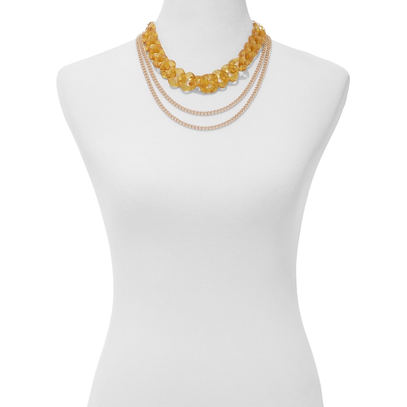 Linked in: resin and polished metal complement one another perfectly on our striking triple-row necklace.