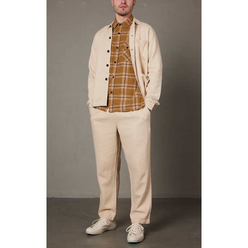 3sixteens Shop Jacket was designed with a nod towards classic European chore coats. It features three generous, rounded front pockets and a boxy fit for easy but functional wear. This season 3sixteen developed a heavyweight cotton/linen blend fabric that drapes and breathes beautifully. The jacket is finished with genuine horn buttons.