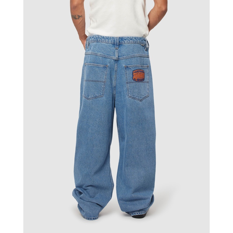 – Mid-weight indigo denim with contrast light tan stitching, finished with Abrand’s ‘Hardware’ patch on the back pocket