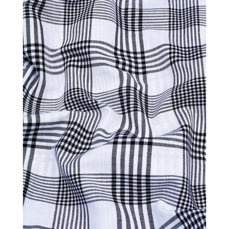 Stay focused and extra sparkly with this Alexis White With Black Check Oxford Cotton Shirt epitomizes classic style with a contemporary twist. Crafted from Oxford cotton, it features a striking white base adorned with contrasting black checks. Designed with a versatile regular collar and long and half sleeves, this shirt transitions from office to evening events. Pair it with tailored trousers for a smart and polished look. The Alexis White With Black Check Oxford Cotton Shirt is a timeless wardrobe staple, combining elegance and comfort effortlessly.