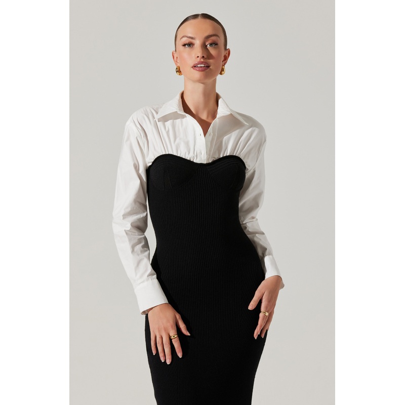 Allyn Contrast Midi Sweater Dress Black white