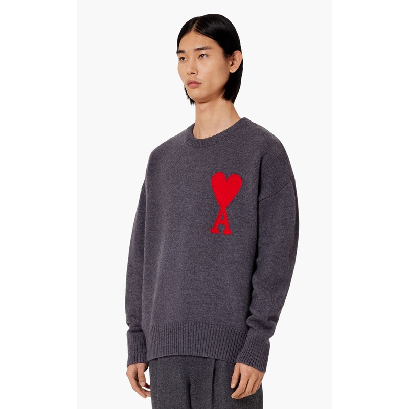AMI Paris ADC Crewneck Sweater Knit Wool Grey/Red
