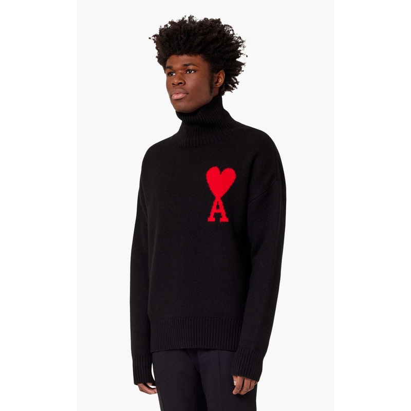 AMI Paris Ami De Coeur Funnel Neck Sweater Black/Red