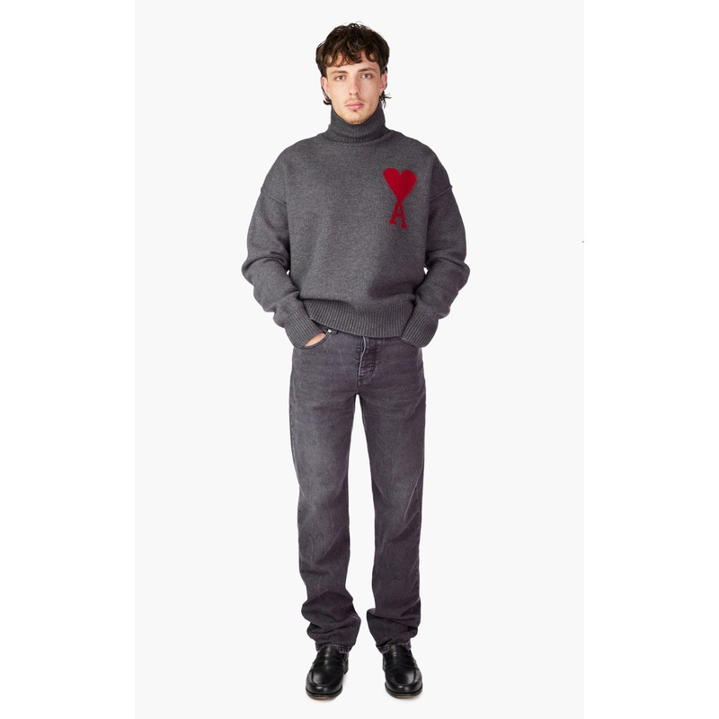 AMI Paris Red ADC Sweater Turtleneck Heather Grey/Red