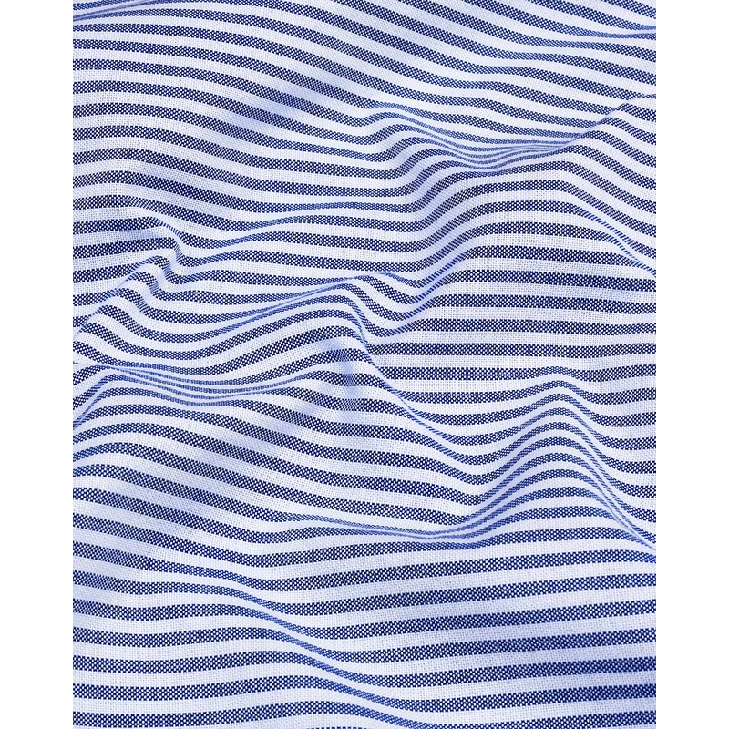 Trendy white cuff and collar give a catchy look to this shirt. Made from premium Oxford cotton, the shirt boasts a soft and durable fabric that provides comfort and breathability. Oxford cotton is known for its textured weave, giving the blue formal shirt a substantial and high-quality feel. Pair this business stripe shirt with hamercop blue colored cotton chinos to look a sharp in office meeting. It can be worn with a suit for formal events, dressed down with chinos for smart-casual occasions, or even worn with jeans for a polished yet relaxed look. This design is available in more than 10 colors and different patterns. Atlanta Blue Bengal Stripe Oxford Cotton White Cuff and Collar Shirt is a stylish and sophisticated wardrobe staple that combines the classic appeal of an Oxford shirt with elegant design elements. Grab it before sold out.
