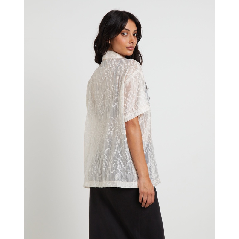 Avery Sheer Textured Short Sleeve Shirt in White 1000104064