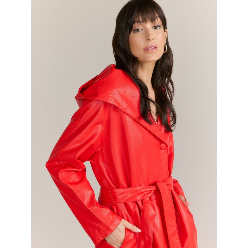Slay the snug-sexy look this season in this hooded trench coat. It has long sleeves and a shawl collar along with a front button closure. It’s belted design ensures to give you a clinched waist look with the perfect fit.