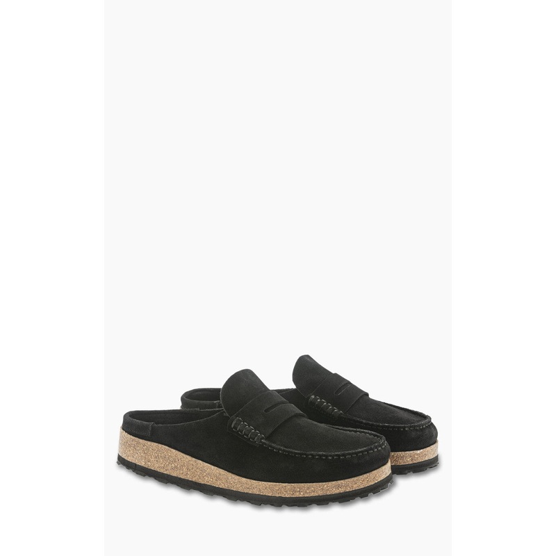 The BIRKENSTOCK Naples is the mens version of the popular semi-open Buckley clog. The moccasin style with striking stitching lends this sandal a unique and masculine appearance. Thanks to its two components, the sole promotes stability and comfort. It comprises a cushioning midsole made from EVA and an outsole made from genuine rubber. Its natural design is down to the upper made from especially soft suede, which hugs the foot like a second skin.
