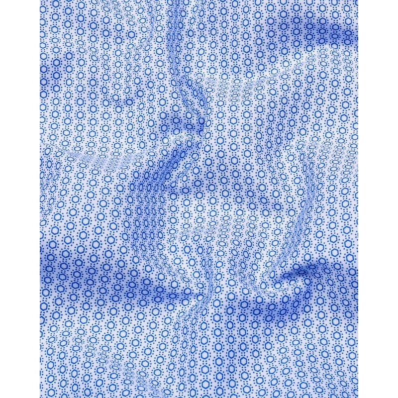 Crafted from soft, breathable cotton, this shirt offers both comfort and style for any occasion. The vibrant blue hexagons create a lovely contrast against the crisp white fabric, adding a touch of freshness to your wardrobe. The lightweight cotton weave has a perfect drape and will lift any outfit. Made to be flexible, breathable, and suitable for many weather conditions, cotton will most likely make you exude effortlessness, no matter how you style it. Whether paired with jeans or trouser, this blue formal shirt is a versatile piece that will brighten up any ensemble.