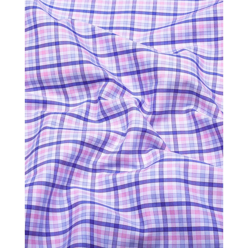 Blue With Pink Small Check Formal Cotton Shirt