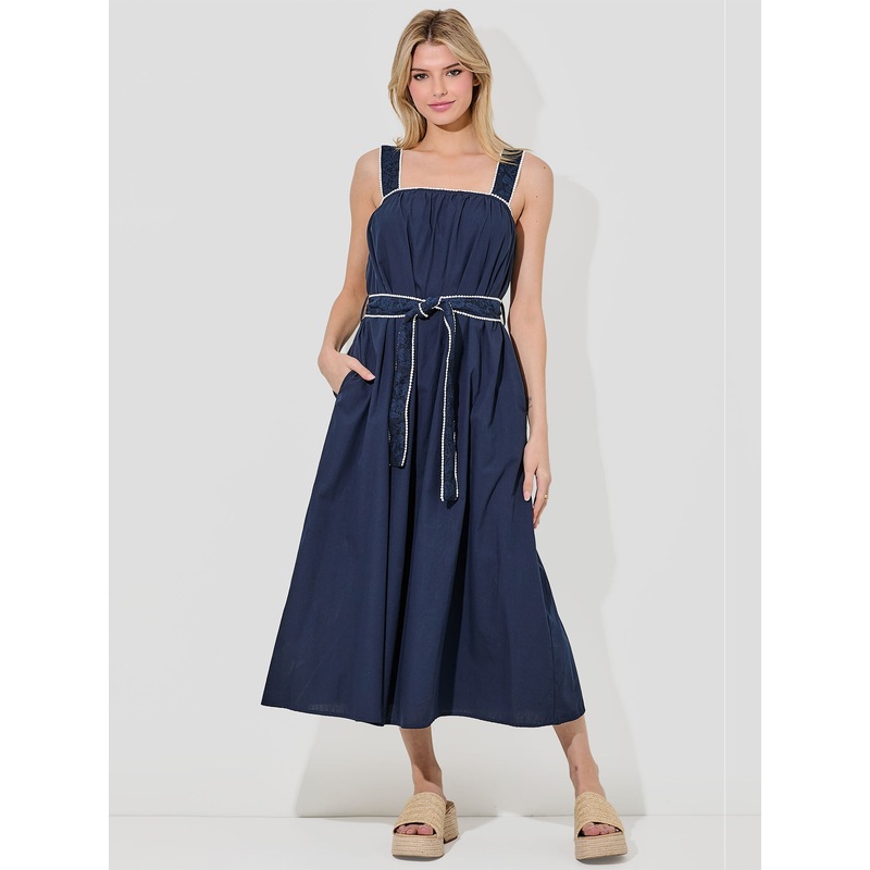 Bobble Trim Tie Midi Sun Dress BLUE – NAVY