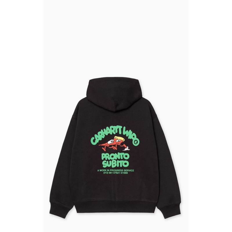 The Hooded Pronto Sweat Jacket is made from heavyweight, brushed polycotton jersey with a fleece-like backing. The item has a balloon fit, which is a little looser and boxier, but also characterized by dropped shoulders and ribbed trims. Graphic prints appear on the front and back.
