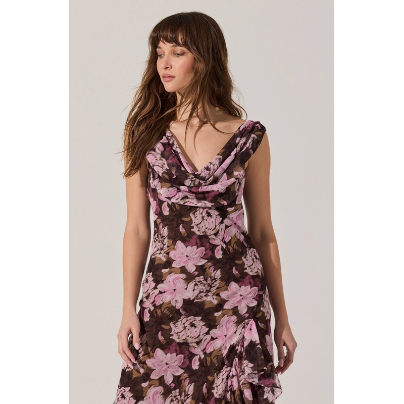 Cecilia Floral Cowl Neck Maxi Dress Brown pink floral