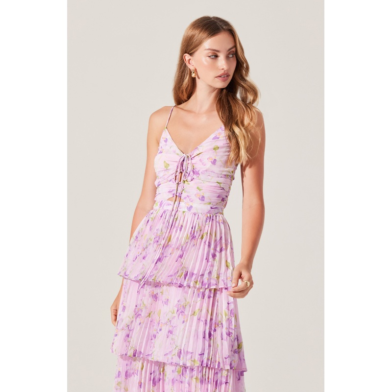 - Pleated floral maxi dress