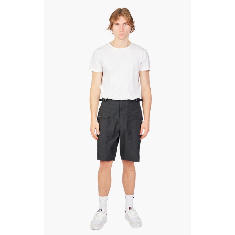 These shorts are based on the jungle fatigues pants used by the U.S. Army in the 1960s. The distinctive cargo pockets have been increased in size to make a stronger statement, and the pockets can be accessed without having to flip up the flap. In keeping with authentic details, a gas flap is attached to the front mane, and the design is finished with attention to detail even in places that are not visible. The knee-length, slightly wide tailoring makes the silhouette easy to wear for everyone.
