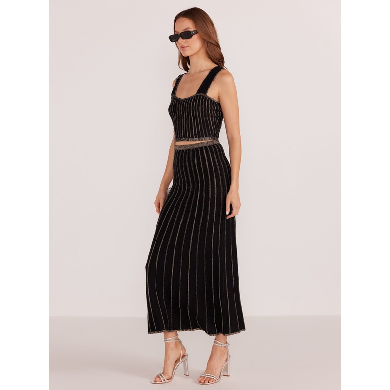 Shimmer with confidence in the Celia Crop Top. Crafted from a soft rib-knit fabric with subtle lurex stripes, this fitted top adds the perfect touch of sparkle. Featuring a flattering cropped length and a sleek silhouette, it’s ideal for pairing with high-waisted skirts or jeans. Dress it up with heels or keep it casual with sneakers for an effortless glam look.