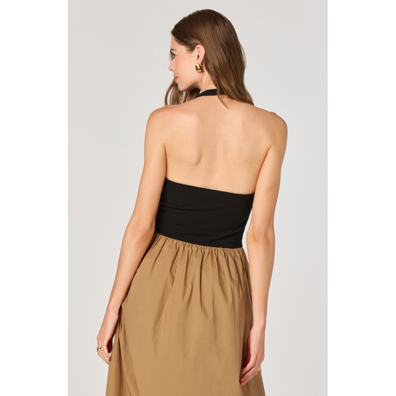 Be the first to review “Mixed Media Halter Midi Dress Black contrast”