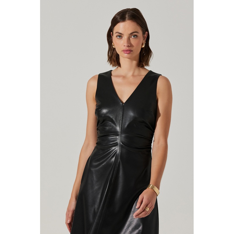 Be the first to review “Omaira Faux Leather Midi Dress Black”