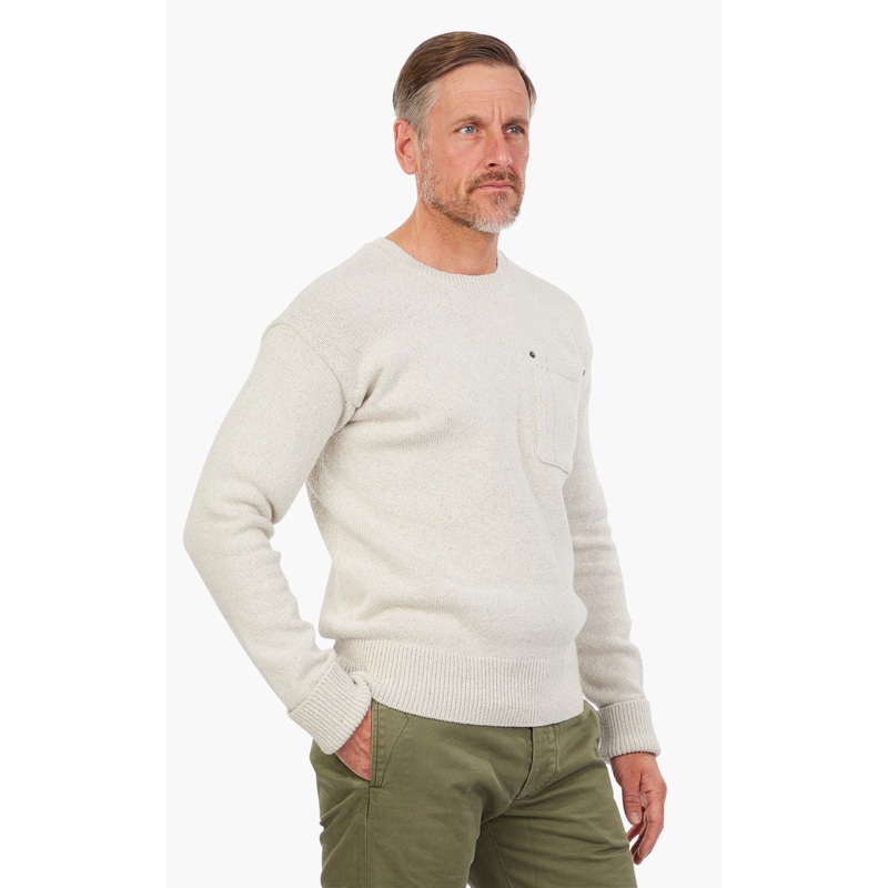 Inspired by a vintage piece, this sweater is made with Italian yarn that is blended with recycled cotton denim. It features a patch pocket at the left chest that is finished with the same signature metal rivets that are on Polo jeans.