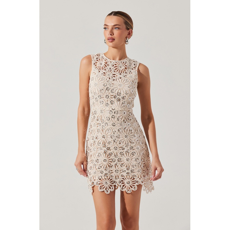 - Crochet floral mini dress