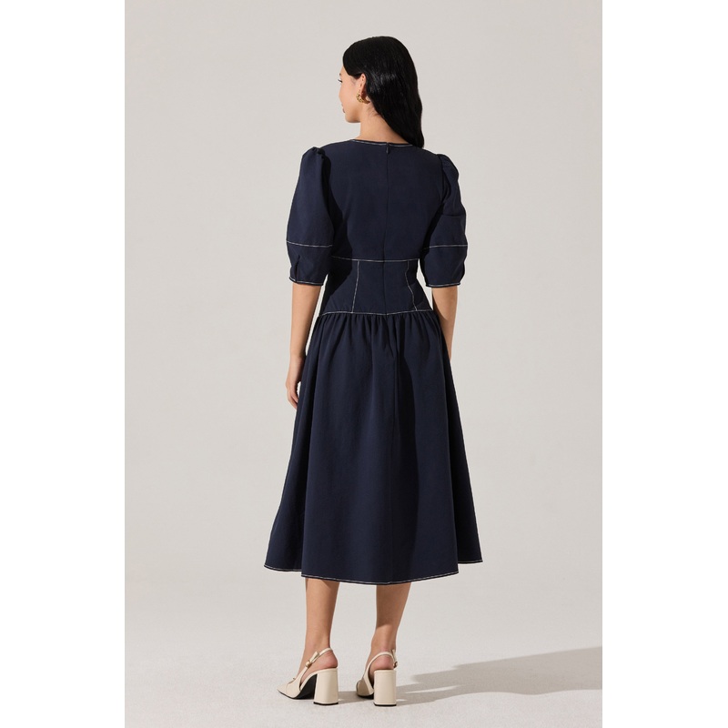 - Contrast stitch midi dress