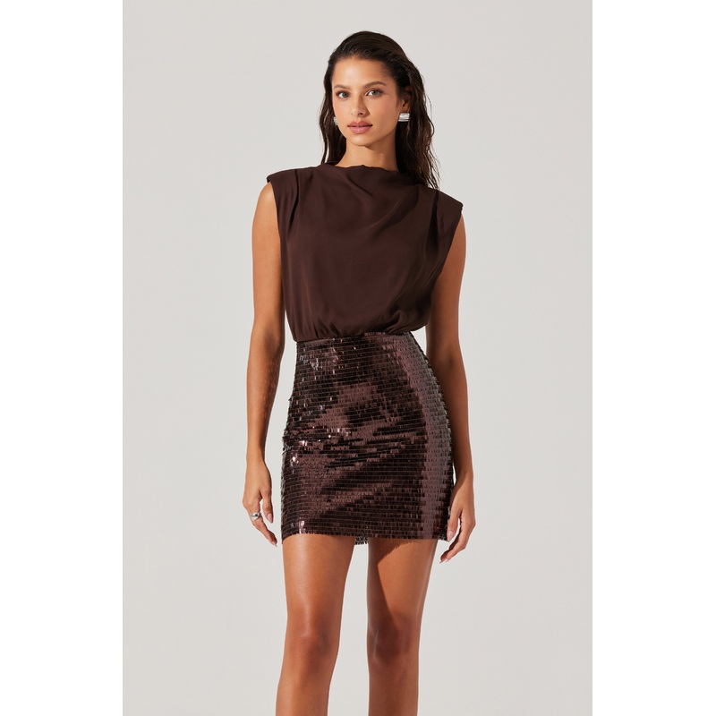 Be the first to review “Sequin Mixed Media Mini Dress Brown”
