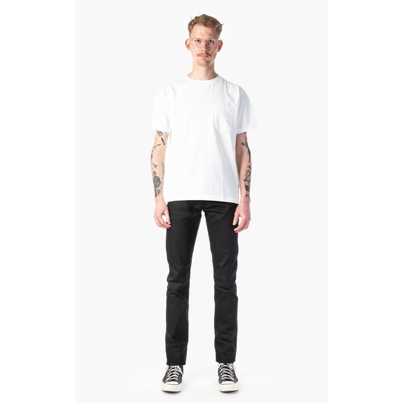 This pair of black jeans is made from 15oz sanforized black selvedge denim from Japan. Both warp and weft yarns are dyed black, but they will fade over time with consistent wear.