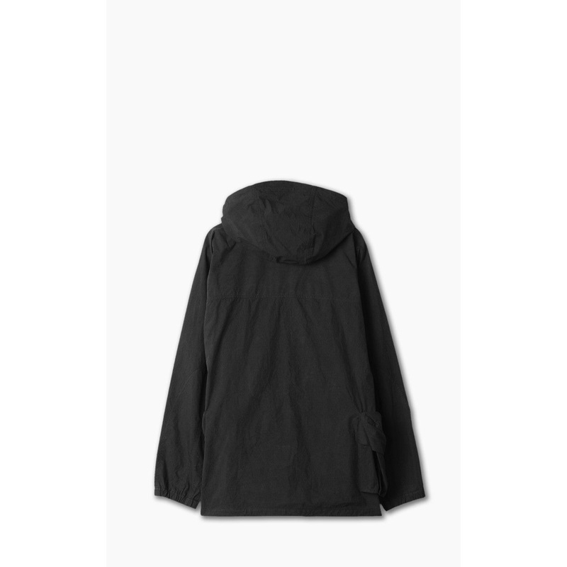 The Indigo C/N Parka is a lightweight jacket. The fabric is a cotton and nylon blend. The Indigo C/N Parka features a hood, zip closure, left bust pocket, dual snap front pockets, and drawcord at hem. The Indigo C/N Parka is designed with a looser fit, with the hem hitting below the waist.