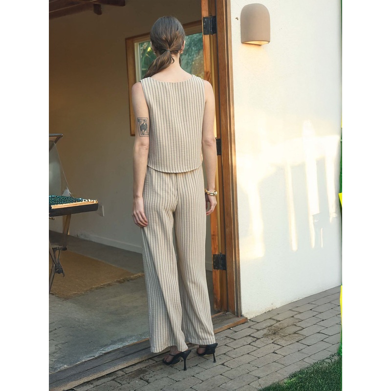 Clean lines and breathable comfort define the Striped Linen Square Neck Sleeveless Top. With a flattering square neckline and vertical stripes, this top pairs beautifully with high-waisted pants or skirts. Light, airy, and ideal for sunny days or vacation layering.