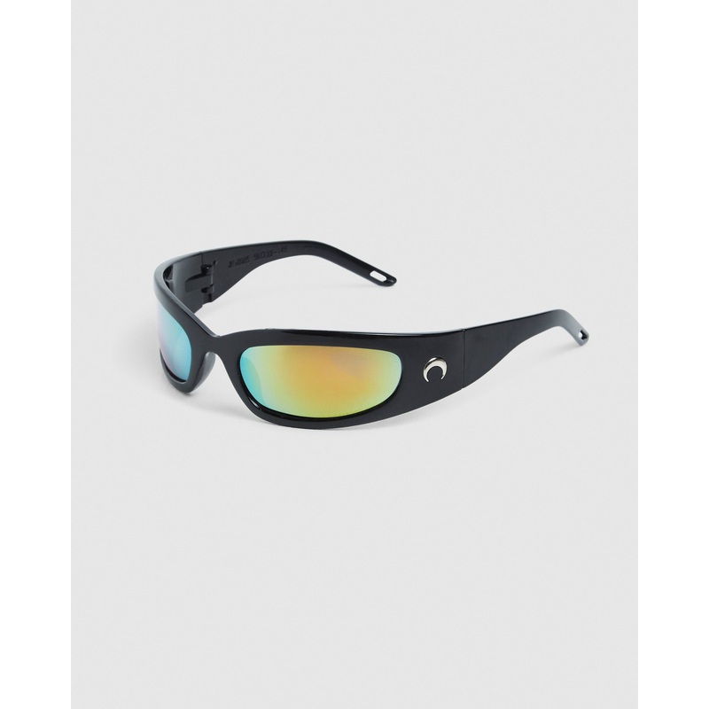 The Tatum Wrap Around Sunnies by Insight come in a black colourway. These sunnies make a statement and feature a reflective lense, comfortable nose bridge and gold hardware detailing on either side.