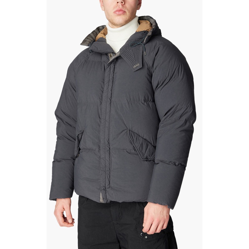 This garment Down Parka is based on the N-3 and N-3A very heavy flying jacket. The fabric is a treated matt nylon, essential to the garment dyeing process, but with the feel and aspect of cotton.