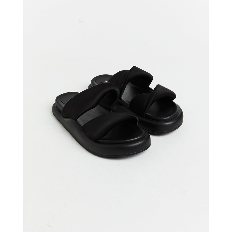 The Therese Satin Slides by Alias Mae come in a black colourway featuring a satin fabrication. This style is designed with a padded double strap with twist feature, soft moulded footbed and rounded sole.