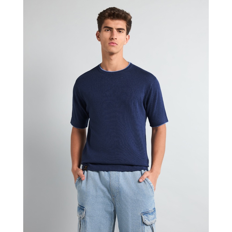 Check out this casual T-shirt from Hamercop. Fashionable and appealing, this regular fit T-shirt comes in a shade of navyblue. This versatile piece can be worn and styled for almost any occasion. It features a classic round neck and half sleeve. Crafted from a soft, breathable fabric, this t-shirt features a unique cotton texture that adds a touch of sophistication and depth. This Thunder NavyBlue Melange Knitted Cotton T-Shirt combines comfort with style, making it a versatile addition to any wardrobe. A beautiful blend of cotton gives this tee its smooth feel and breathability. The cotton is uniquely suited to regulating temperature, so it will ensure you don’t overheat.