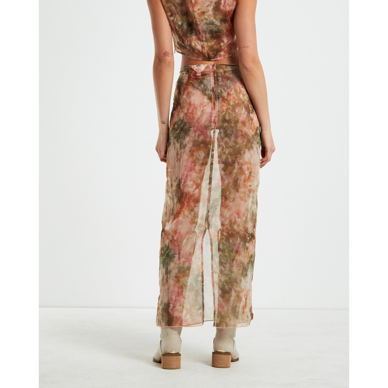 The Tibby Tie Dye Midi Skirt by Subtitled comes in an assorted colourway. This style is crafted from a sheer mesh fabrication, gathered detail at the centre front, v-line waistband, split at the reverse and has a midi length.