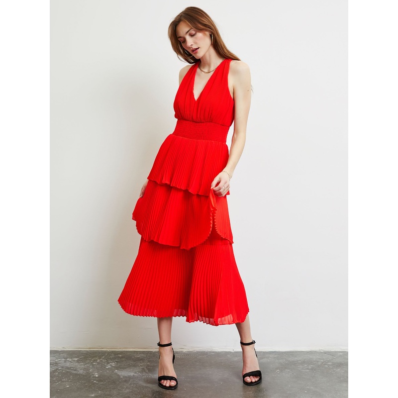 Be the first to review “Tiered Pleats Dress RED – RED”