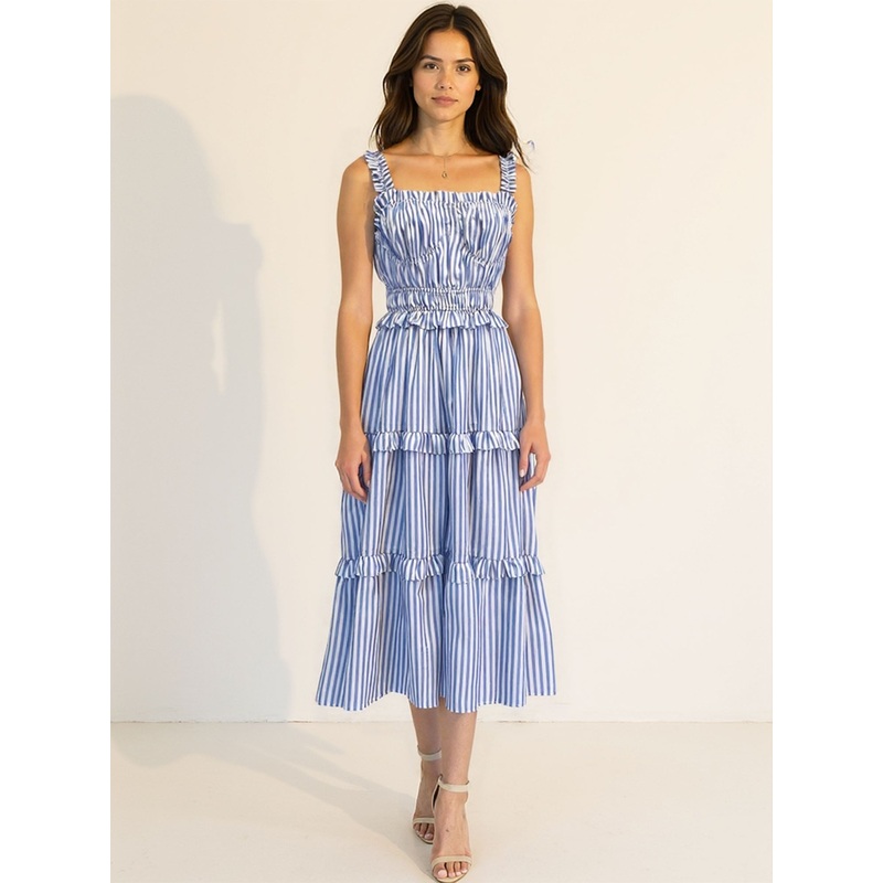 Be the first to review “Tiered Striped Dress BLUE – BLUE”
