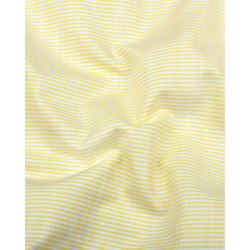 Stay cool and stylish this summer with our Trebzon Yellow With White Stripe Linen Cotton Formal Shirt, a sophisticated and stylish addition to your wardrobe. This particular shirt, featuring small stripes, regular collar, full and half sleeves, brings a bold and refined aesthetic to your wardrobe. The fabric is a luxurious combination of linen and cotton, offering a lightweight feel that keeps you cool and comfortable throughout the day.