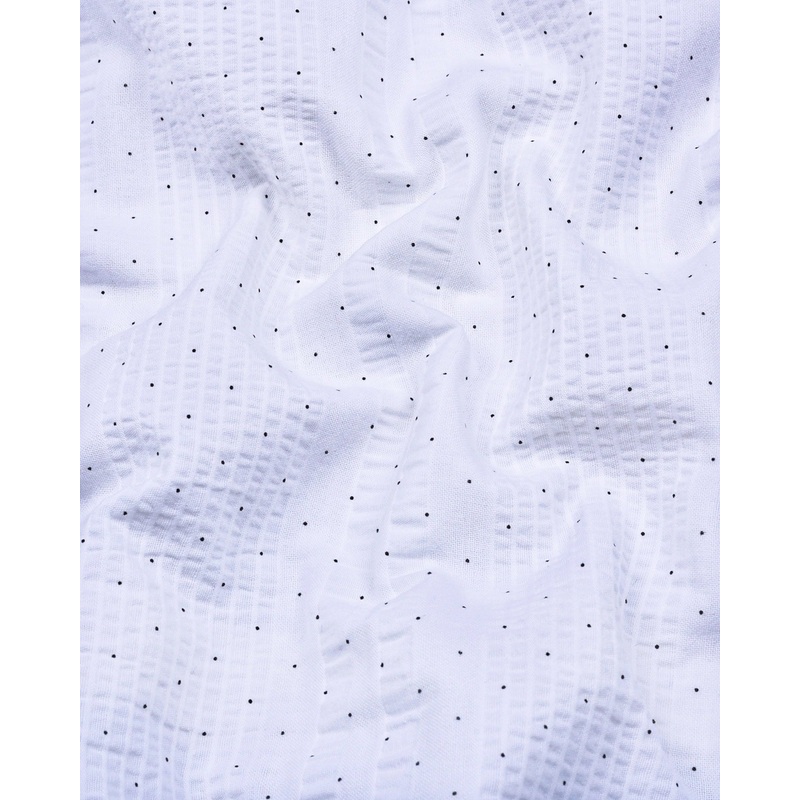 This Trojes White With Black Dot Printed Seersucker Cotton Shirt combines a classic design with a modern twist. The shirt features a crisp white base adorned with subtle black dot prints, adding a playful yet sophisticated touch. The weft stripe dobby texture provides a refined, textured pattern that enhances the overall appearance. Made from soft, breathable cotton, it ensures comfort throughout the day. Perfect for semi-formal occasions, this shirt is a versatile addition to any wardrobe.
