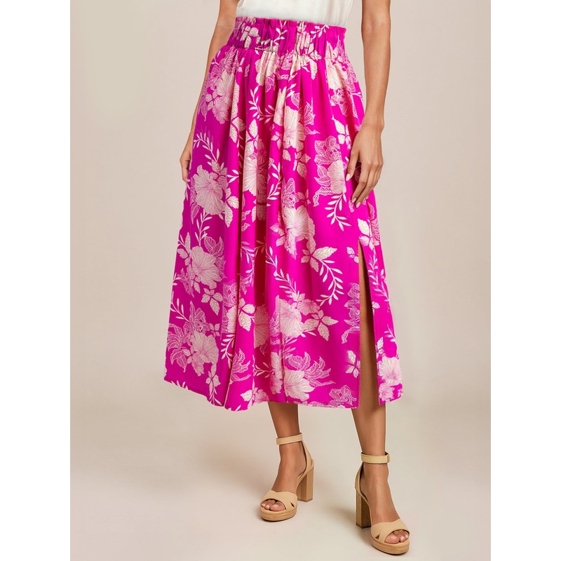 Bring a dose of island flair to your wardrobe with this Tropical Floral Midi Circle Skirt. The vibrant floral print and breezy circle-cut silhouette offer movement and charm in every step. A fitted waistband ensures a flattering fit, perfect to pair with a tucked-in blouse or a cropped tank. Ideal for vacations, picnics, or sunny city days.