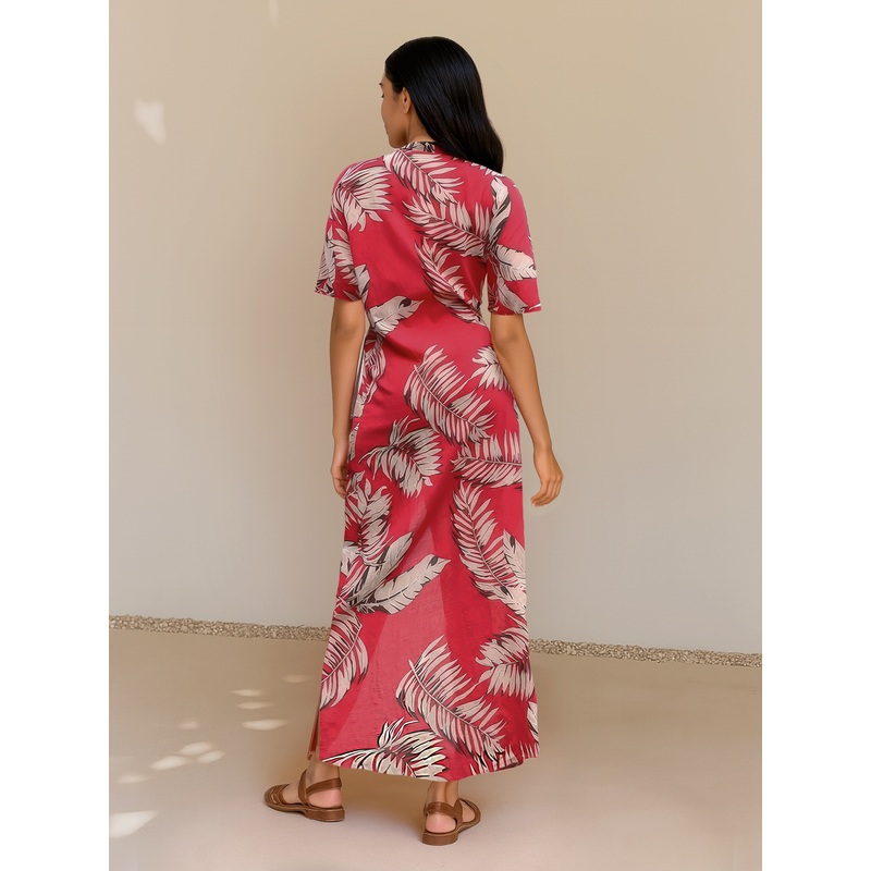 Turn up the vacation vibes with the Tropical Maxi Shirt Dress. This breezy beauty features a collared neckline, button-down front, and a flowy silhouette adorned with a vibrant tropical print. Perfect for sunny getaways or casual days in the city, its the effortless piece that makes you feel like youre on holidaywherever you are.