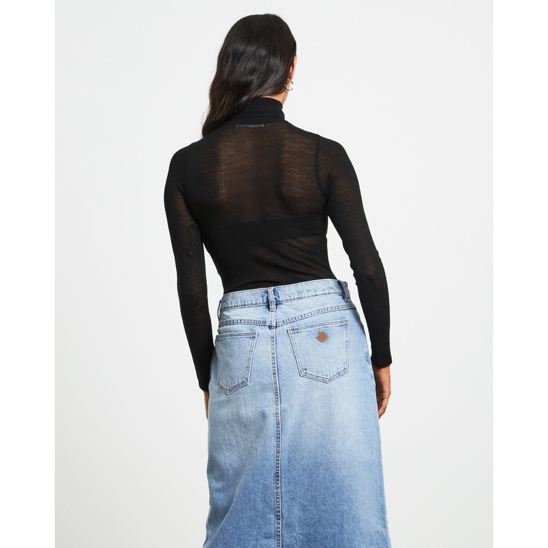 The Turtle Neck Long Sleeve Top by Studio comes in a black colourway and is crafted in a soft sheer fabrication.This style is designed with a turtle neck, long sleeves, slim fit and full length.