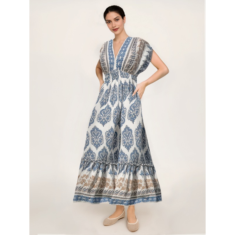 Be the first to review “V-Neck Border Print Midi Sun Dress BLUE – BLUE”