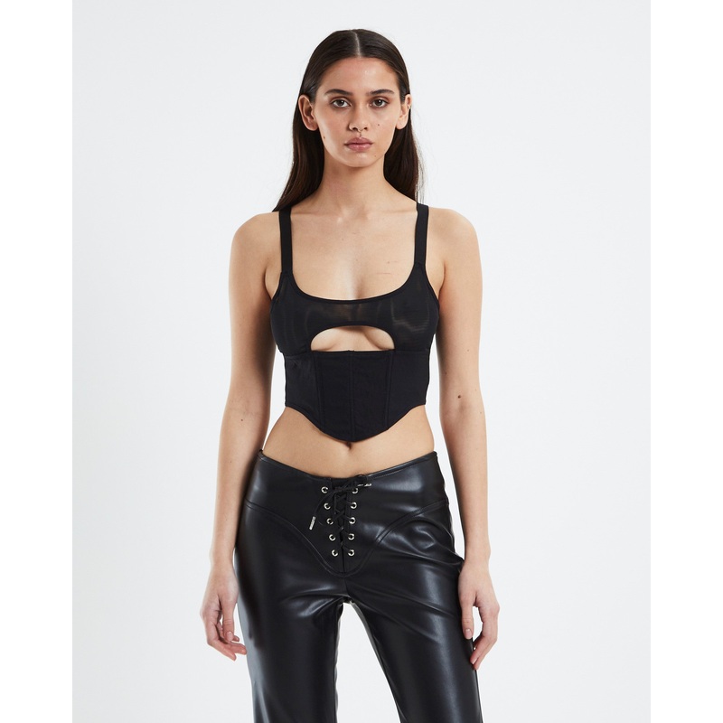 The Valerie Cut Out Corset by Neon Hart is crafted from a soft and stretchy fabrication. The corset comes in a black colourway and is designed with a front cut-out detail. Featuring a pointed hem, square neckline, adjustable shoulder straps and a zipper at the reverse. Make a statement and pair it back with low rise PU pants and chunky heels.