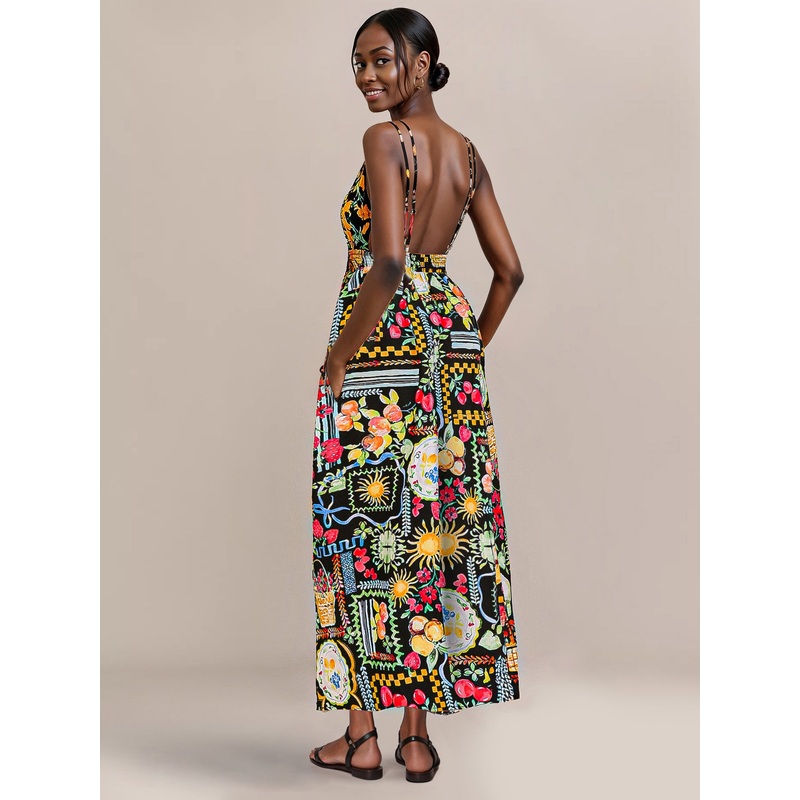 Be the first to review “Vibrant Print Maxi Dress BLACK – BLACK”