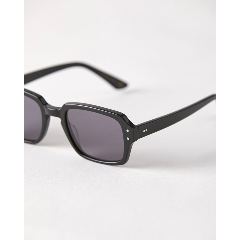 The Wilson Sunglasses by Shevoke are oversized square sunglasses with a black acetate frame and blue lenses.