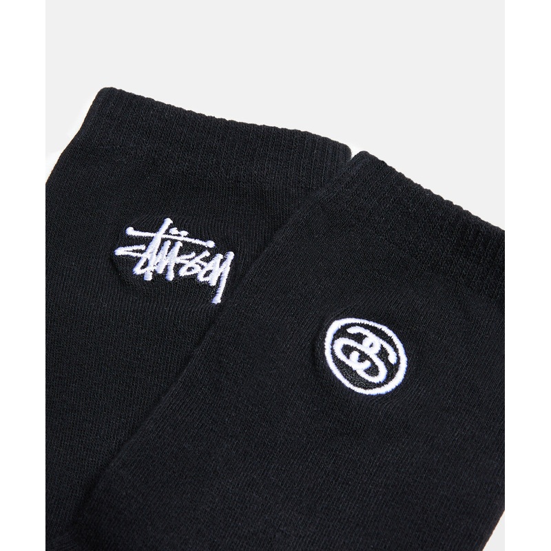 The Grafitti Crew Socks by Stussy are crew socks with contrasting embroidery at the ankle and ribbed trim along the hemline. They come in a pack of three in a black colourway.