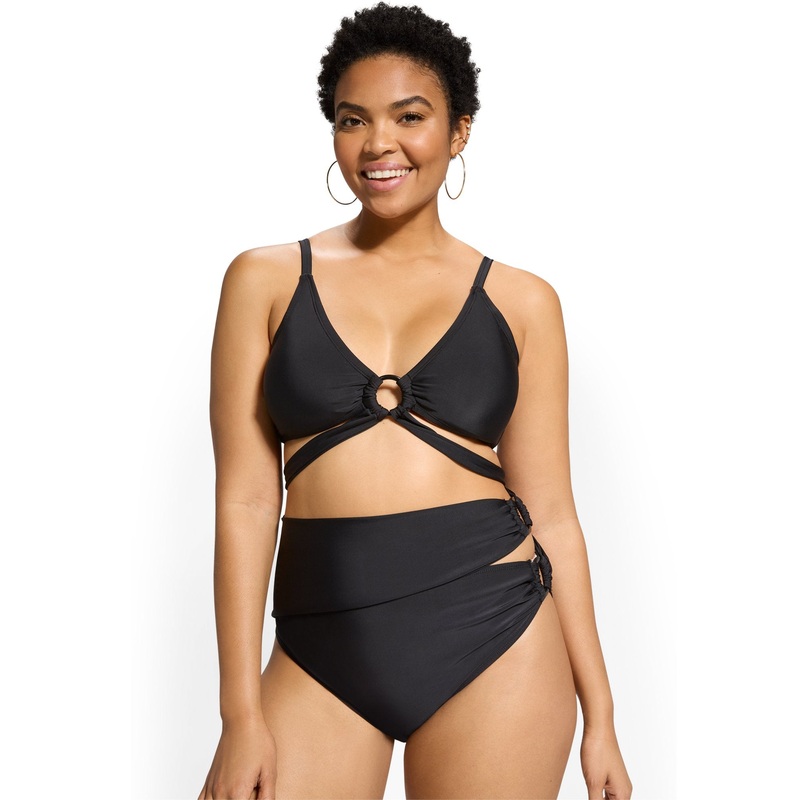 Our innovative and functional NY&C SWIM four-way stretch fabric is ultra soft yet strong. Featuring SPF/UPF 30+ protection, it resists chlorine and dries quickly. Wrinkle-free and shrinkage-free technology gives you more freedom, comfort and performance than ever before. Trendy design and a flattering fit come together in this sleek bikini top, designed with an O-ring cut-out and a wrap-around tie detail.