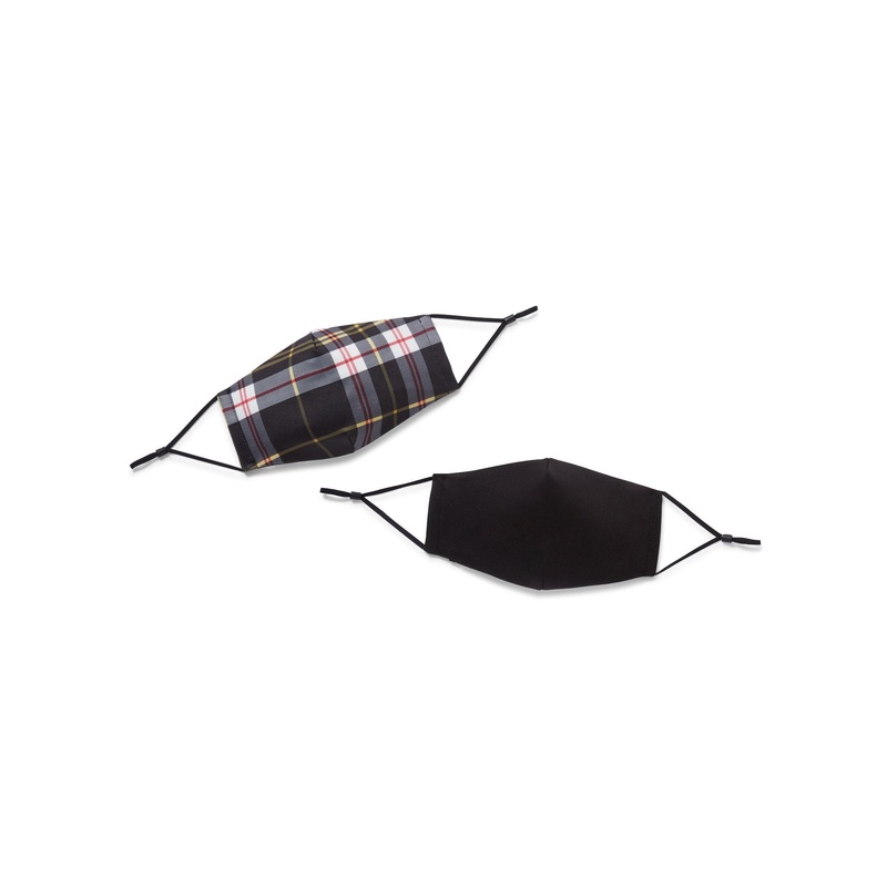 2-Mask Set – Plaid Print & Solid BLACK – BLACK