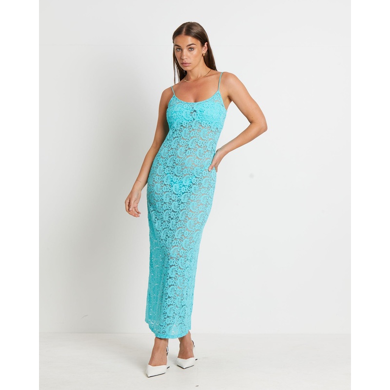 Zayla Lace Maxi Dress in Aqua Blue BLU