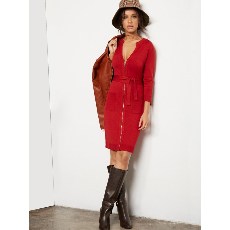 Zip-Front Belted Sweater Sheath Dress – 7th Avenue RED – RED ROOSTER